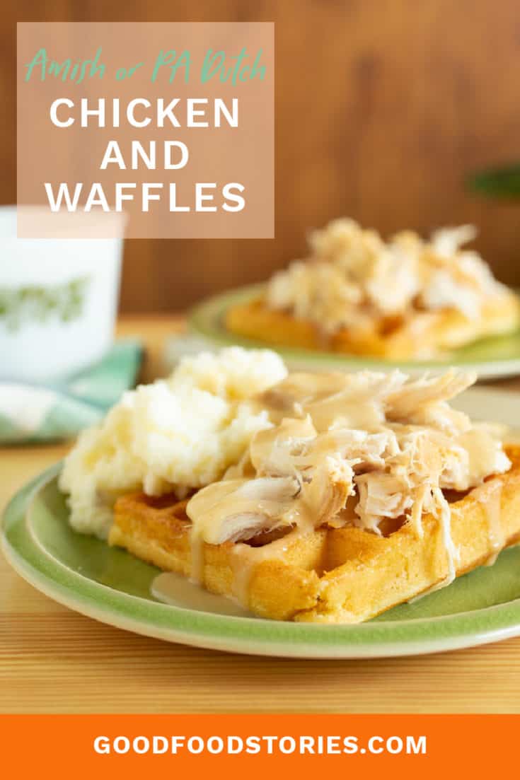 Amish chicken and waffles done the Pennsylvania Dutch way means roast chicken on a waffle with creamy gravy. It's epic comfort food.
