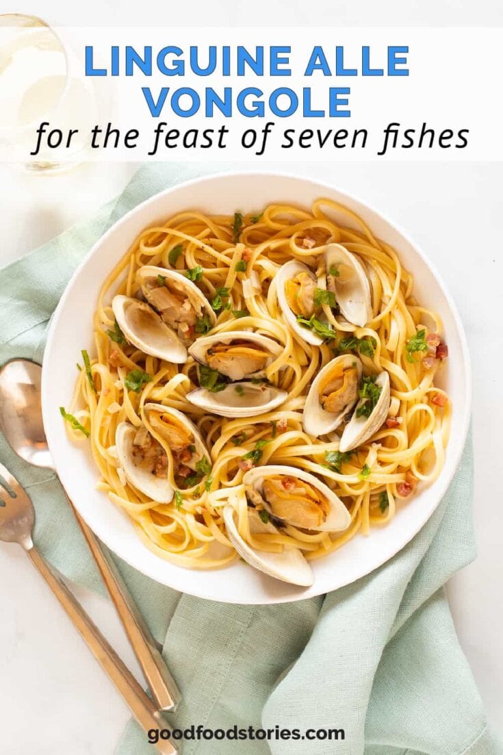 However, it’s traditional for the Feast of the Seven Fishes to serve a big bowl of linguine alle vongole, and this can certainly feed a crowd.